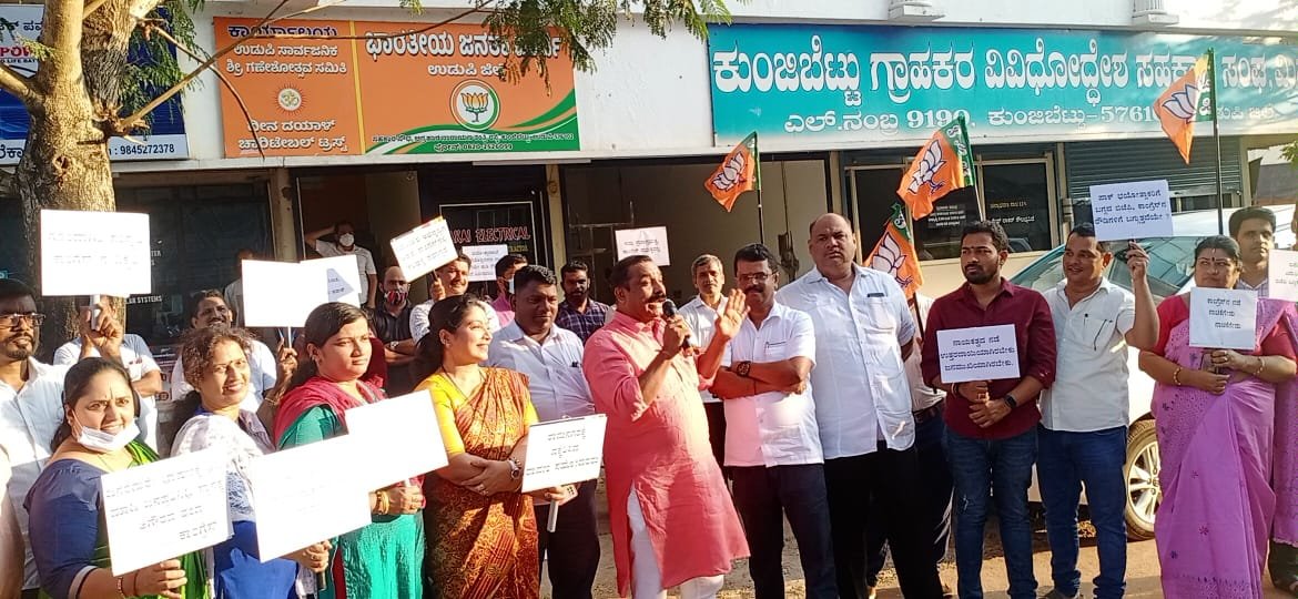 ಬಿಜೆಪಿ ಜಿಲ್ಲಾಧ್ಯಕ್ಷ ಕುಯಿಲಾಡಿ ಸುರೇಶ್ ನಾಯಕ್ ಮತ್ತು ಬಿಜೆಪಿ ಮಂಗಳೂರು ವಿಭಾಗ ಪ್ರಭಾರಿ ಕೆ.ಉದಯ ಕುಮಾರ್ ಶೆಟ್ಟಿ ಯವರು ಪ್ರತಿಭಟನಾ ಸಭೆಯನ್ನುದ್ದೇಶಿಸಿ ಮಾತನಾಡಿ, ಕಾಂಗ್ರೆಸ್ ನ ಗೂಂಡಾ ಸಂಸ್ಕೃತಿಯನ್ನು ಖಂಡಿಸಿದರು.