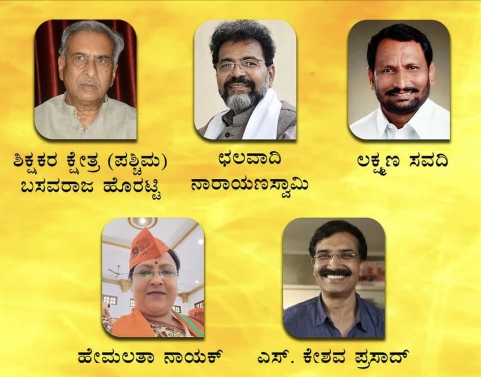 ಬೆಂಗಳೂರು: ಜಖನ್ 3. ರಂದು ನಡೆಯಲಿರುವ ವಿಧಾನಪರಿಷತ್ ಚುನಾವಣೆಗೆ ಇಂದು ಅಭ್ಯರ್ಥಿಗಳ ಪಟ್ಟಿಯನ್ನು ರಾಜ್ಯ ಬಿಜೆಪಿ ಬಿಡುಗಡೆ ಮಾಡಿದ್ದು , ಛಲವಾದಿ ನಾರಾಯಣ ಸ್ವಾಮಿ, ಹೇಮಲತಾ ನಾಯಕ,ಲಕ್ಷ್ಮಣ ಸವದಿ, ಮತ್ತು ಎಸ್. ಕೇಶವ ಪ್ರಸಾದ್ ಗೆ ಟಿಕೆಟ್ ಹಂಚಿಕೆ ಮಾಡಲಾಗಿದೆ