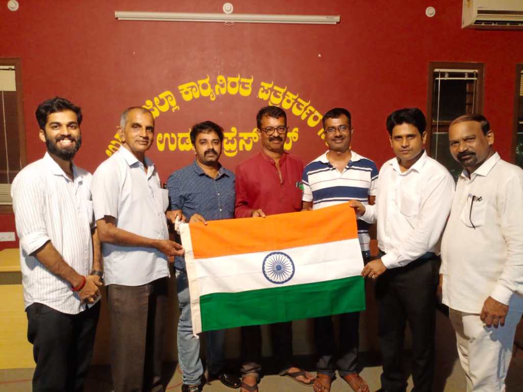 ಉಡುಪಿ: ಸ್ವಾತಂತ್ರ್ಯದ ಅಮೃತ ಮಹೋತ್ಸವ ಆಚರಣೆಯ ಅಂಗವಾಗಿ “ಹರ್ ಘರ್ ತಿರಂಗಾ” ಅಭಿಯಾನದಡಿ ಬಿಜೆಪಿ ಜಿಲ್ಲಾ ಮಾಧ್ಯಮ ವಿಭಾಗದ ವತಿಯಿಂದ ಉಡುಪಿ ಜಿಲ್ಲಾ ಕಾರ್ಯನಿರತ ಪತ್ರಕರ್ತರ ಸಂಘದ ಅಧ್ಯಕ್ಷ ರಾಜೇಶ್ ಶೆಟ್ಟಿಯವರಿಗೆ ಉಡುಪಿ ಜಿಲ್ಲಾ ಪ್ರೆಸ್ ಕ್ಲಬ್ ನಲ್ಲಿ ರಾಷ್ಟ್ರ ಧ್ವಜವನ್ನು ಹಸ್ತಾಂತರಿಸಲಾಯಿತು.